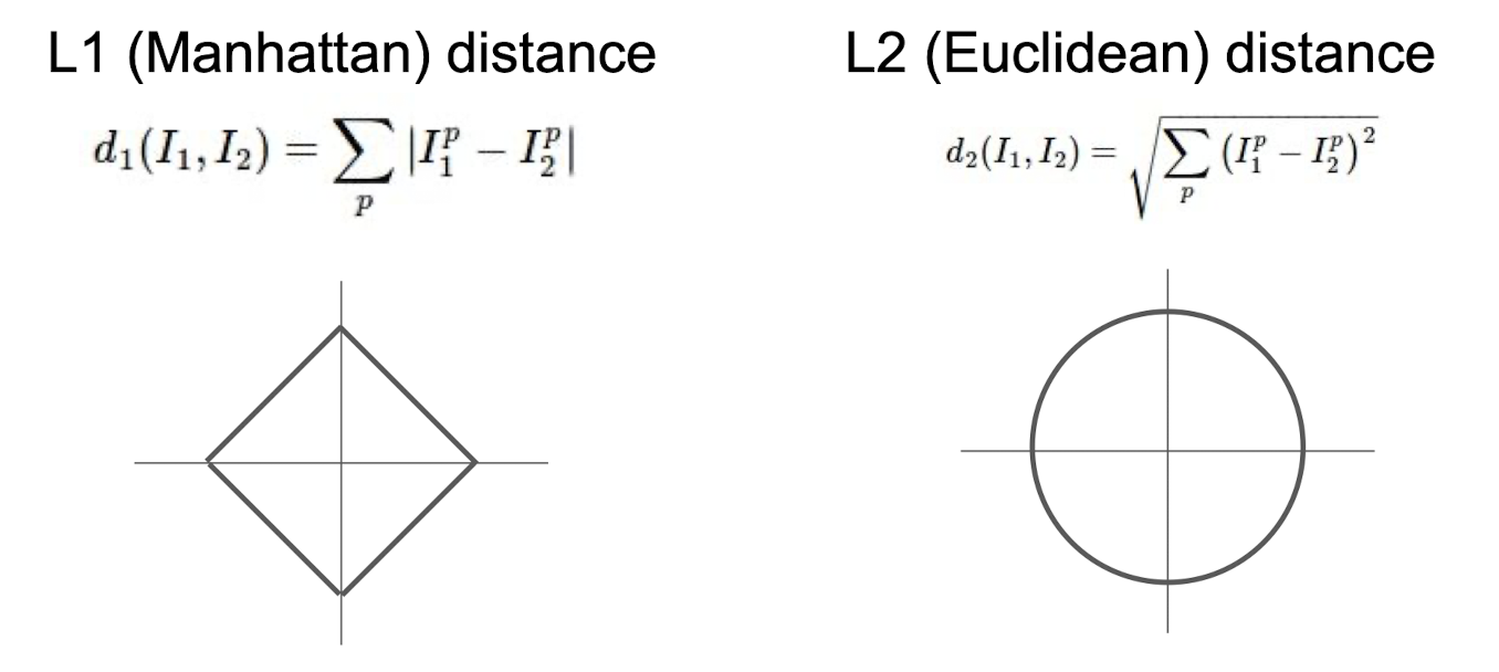 hyperparameter : k, L1 or L2 (distance calculating formula)