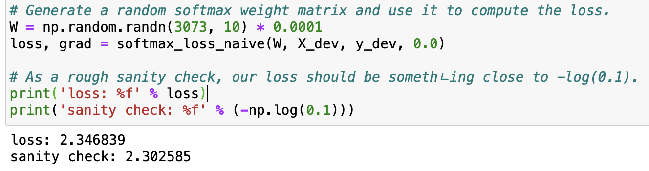 1. def softmax_loss_naive(W, X, y, reg):