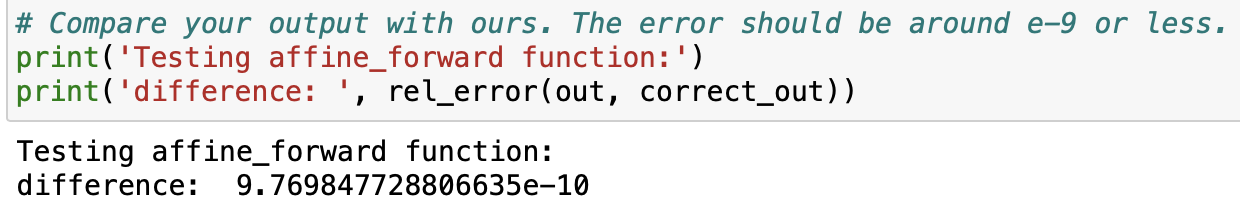 a, fc_cache = affine_forward(x, w, b)