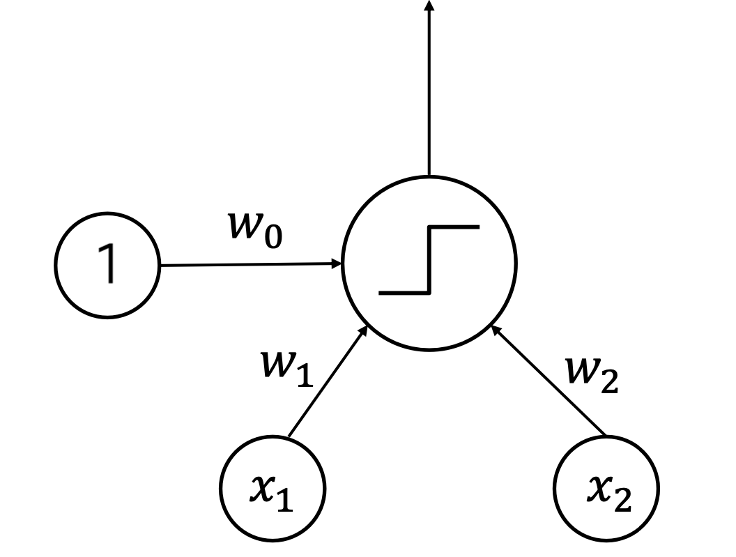 : Linear classifier $y = f(w_{0} + w_{1}x_{1} + w_{2}x_{2})$
